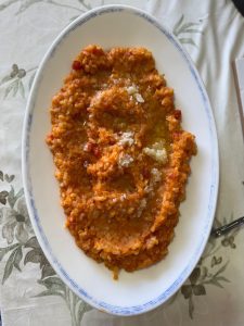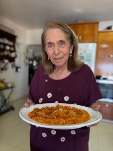 ביקור מרגש ומלא השראה בבית הגב' עליזה אריה שבתל אביב. עליזה היא אישה רבת עוצמה, שמקדישה את חייה לנתינה ואהבה לעדה הבוכרית. עשייתה הענפה למען הקהילה ניכרת לאורך השנים, ועד היום היא ממשיכה לפעול במסירות במסגרת קונגרס יהודי בוכרה. סיפורה מעורר השראה ומבטא מהי נתינה אמיתית. במהלך המפגש, חלקה איתנו עליזה את המתכון "שולה מוש"- תבשיל מסורתי עם עדשים כתומות ורוטב שום, אותו למדה מאימה.