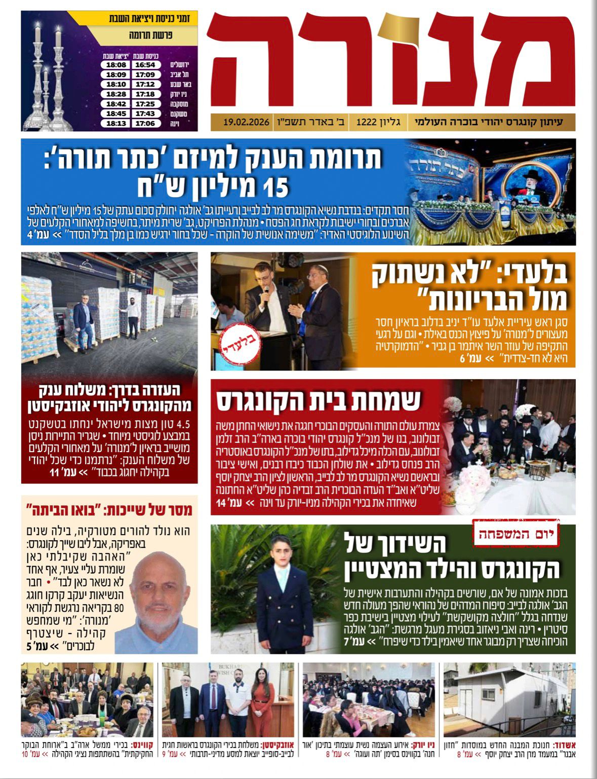 >> נשיא הקונגרס, מר לב לבייב, בראיון חג נרחב ל'מנורה'